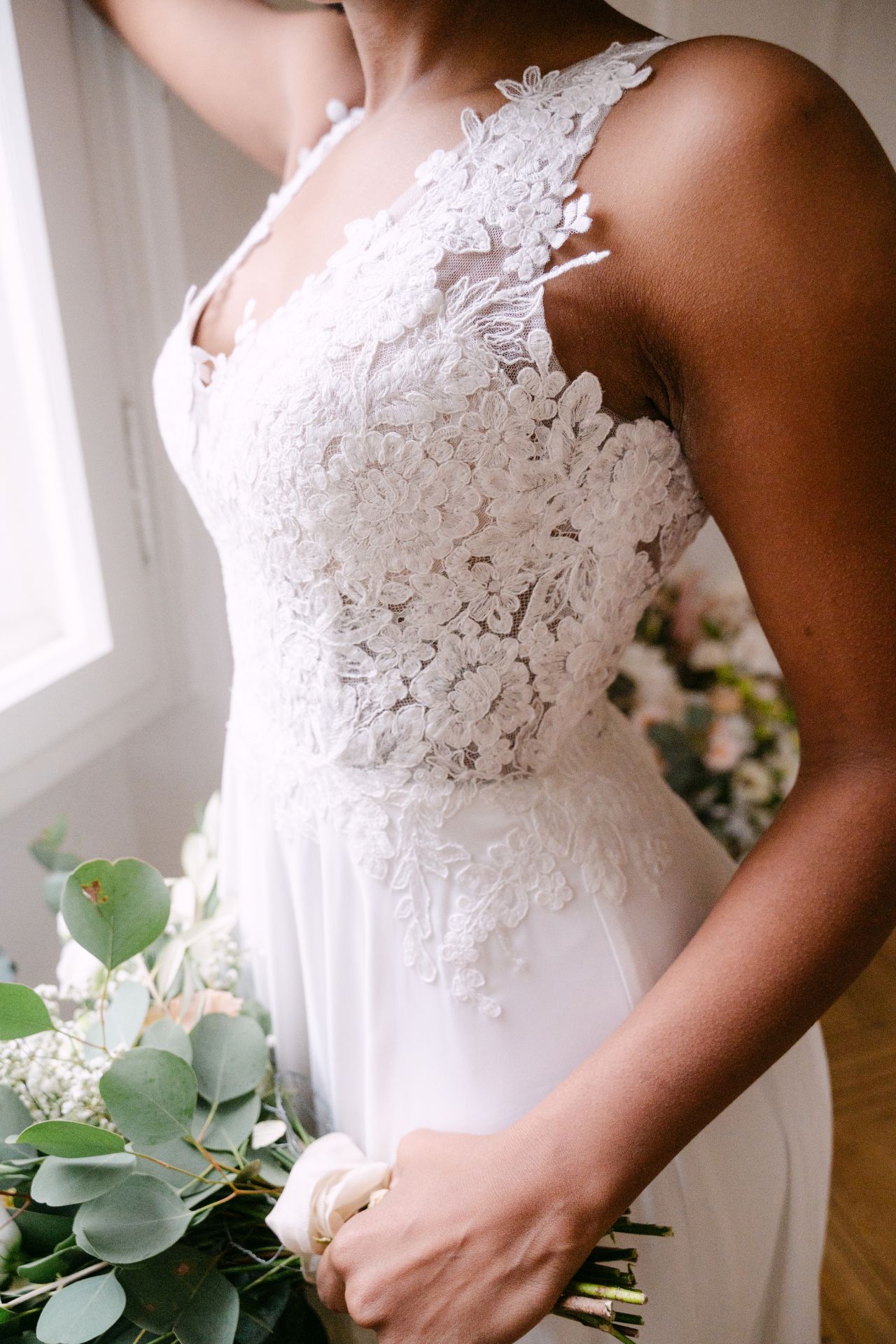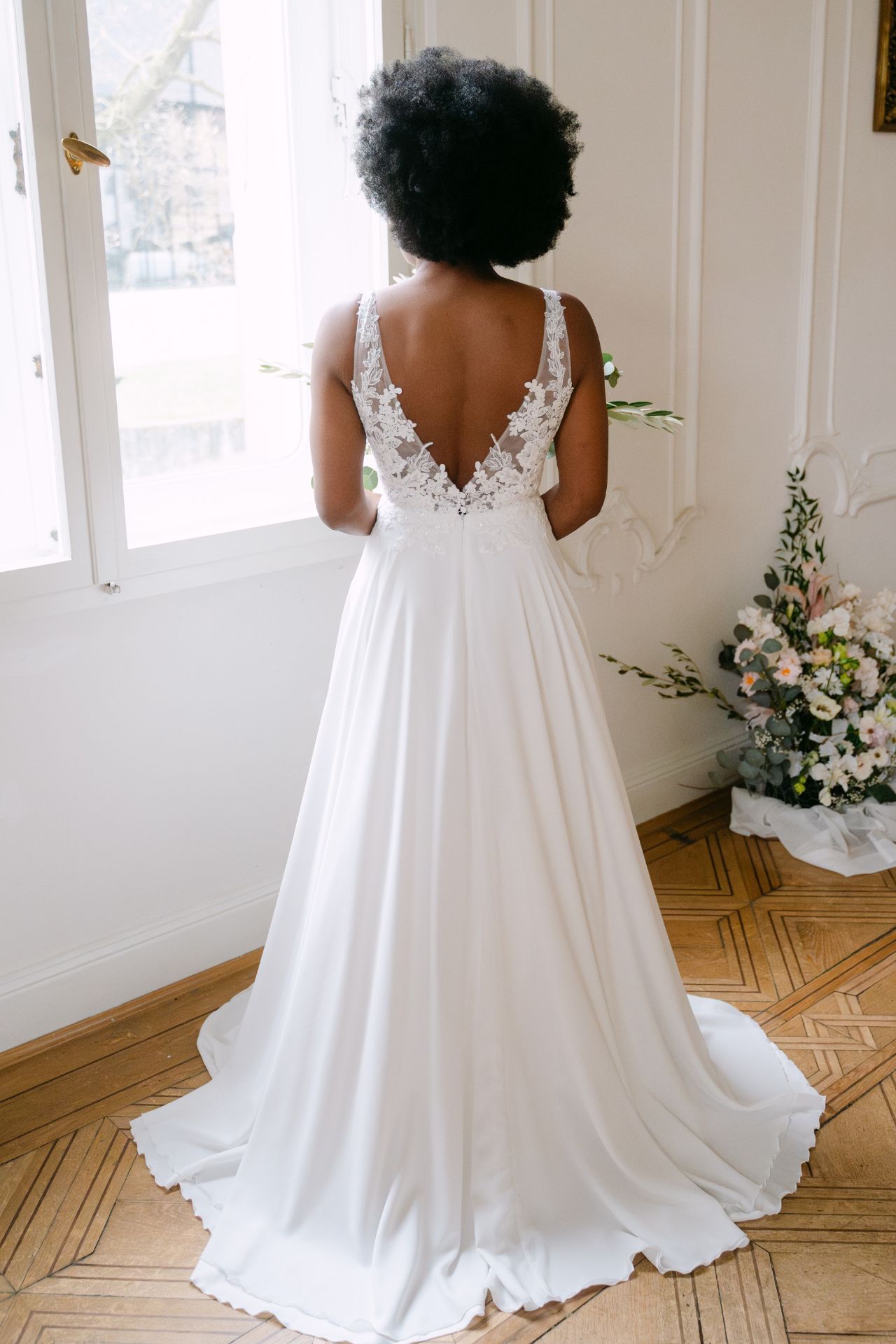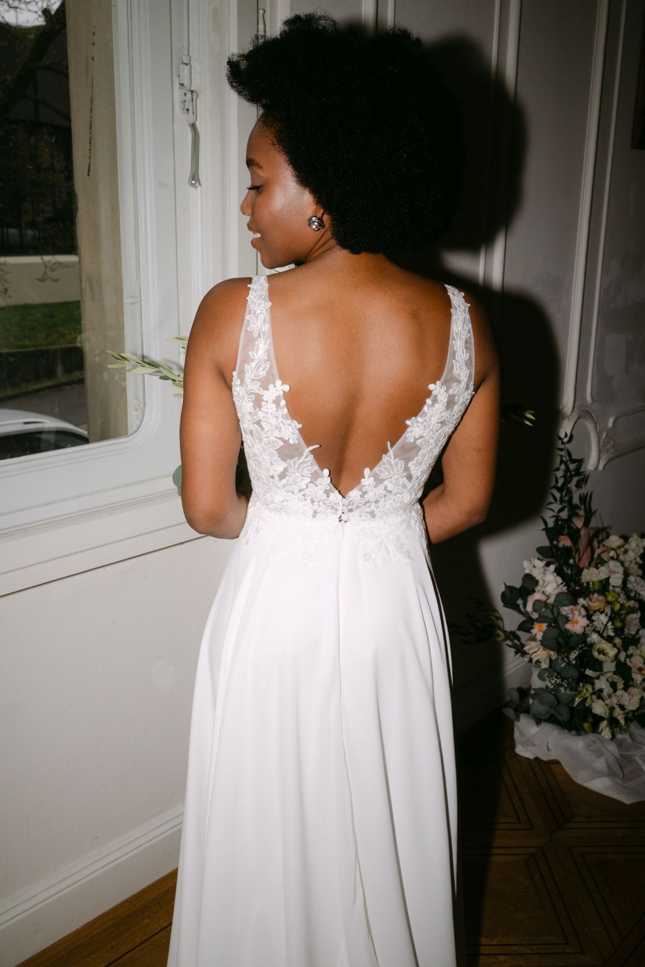 Dieses Kleid lässt sich nach deinen Wünschen mitgestalten. Beliebte Individualisierungen unserer Bräute sind z. B. Rocktausch, Ärmelvariationen oder Farbwechsel.